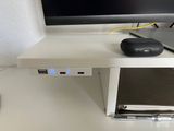 I found a few USB hubs that have both A and C ports, but they all come with super short cables for plugging into a laptop. In the end, I bought a 4-port USB-A hub with a longer cable and a mount, plus some USB-A to USB-C adapters. It worked fine — I screwed it onto the monitor stand, and the ports were finally easy to reach. But this glitchy piece of junk only worked until the computer went to sleep — after that, I had to unplug and plug it back in every time.